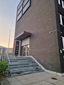- Paid parking available to the right of the building